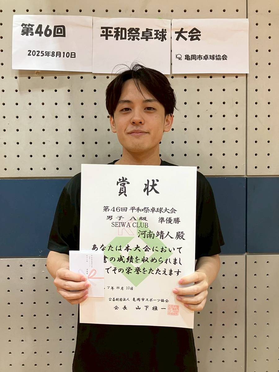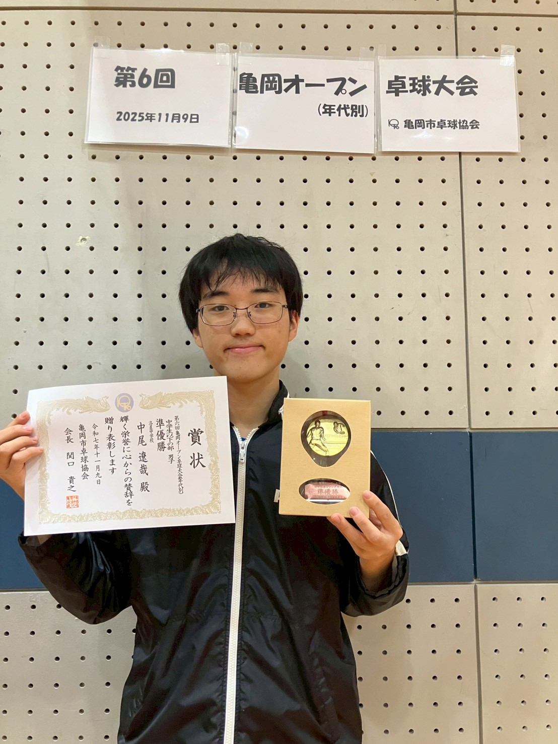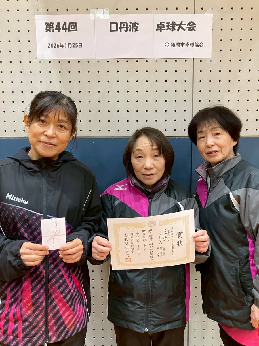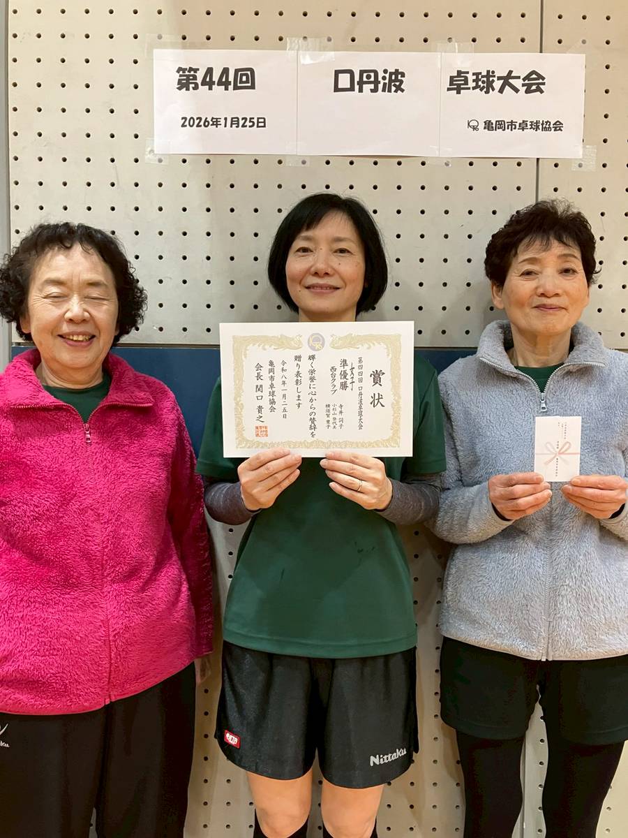 2026年1月25日口丹波卓球大会 2025年12月7日市民卓球大会 2025年11月9日亀岡オープン卓球大会(年代別) 2025年11月9日府民総体 2025年10月12日会長杯卓球大会 2025年9月14日市町村交流マスターズ大会 2025年9月7日協会研修会 2025年8月10日平和祭卓球大会 2025年7月6日亀岡オープン団体 2025年6月1日理事長杯 2025年4月27日協会員